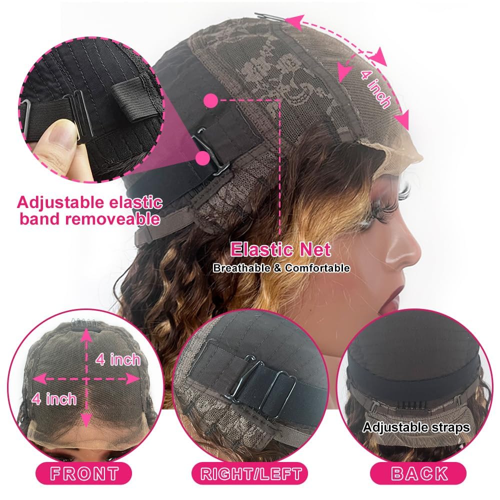 🌸Human Hair Lace Front Wigs Cap:Average Size Cap(22.5 circumferences inch ),Wigs with Removable Adjustable Elastic Band and no Adhesives or Tricks Required,More Comfortable and Match Head Perfectly,Easy to Wear, Quick and Easy.