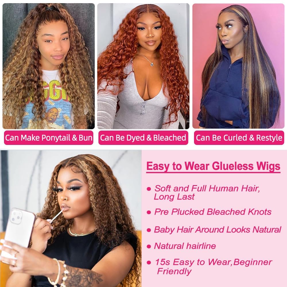 🌸Ombre Lace Front Wigs Human Hair Texture:4/27 Highlight Deep Wave Lace Front Wigs Human Hair Wigs Pre Plucked with Baby Hair Around,Soft and Breathable,Invisible Bleached Knots Match All Skin Color Well. Looks Natural and Realistic as Your Own Hair.