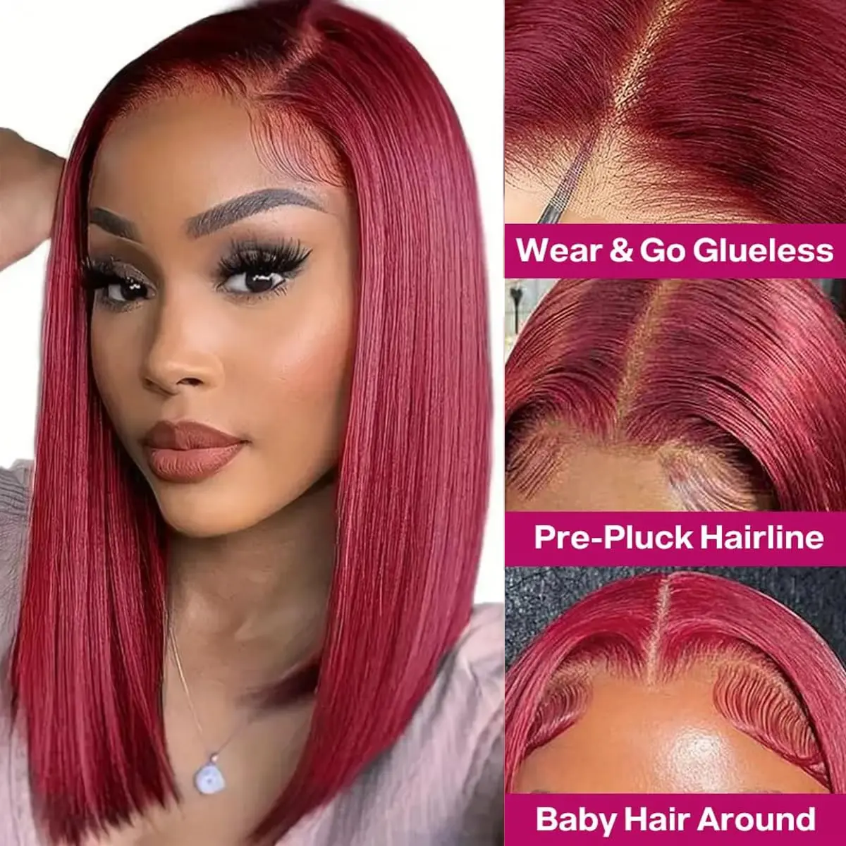 99j Burgundy Glueless Bob Wig Human Hair Pre Plucked Pre Cut 5×5 Lace Closure Bob Wigs HD Lace Frontal Wig Glueless Short Straight Bob Human Hair Wigs