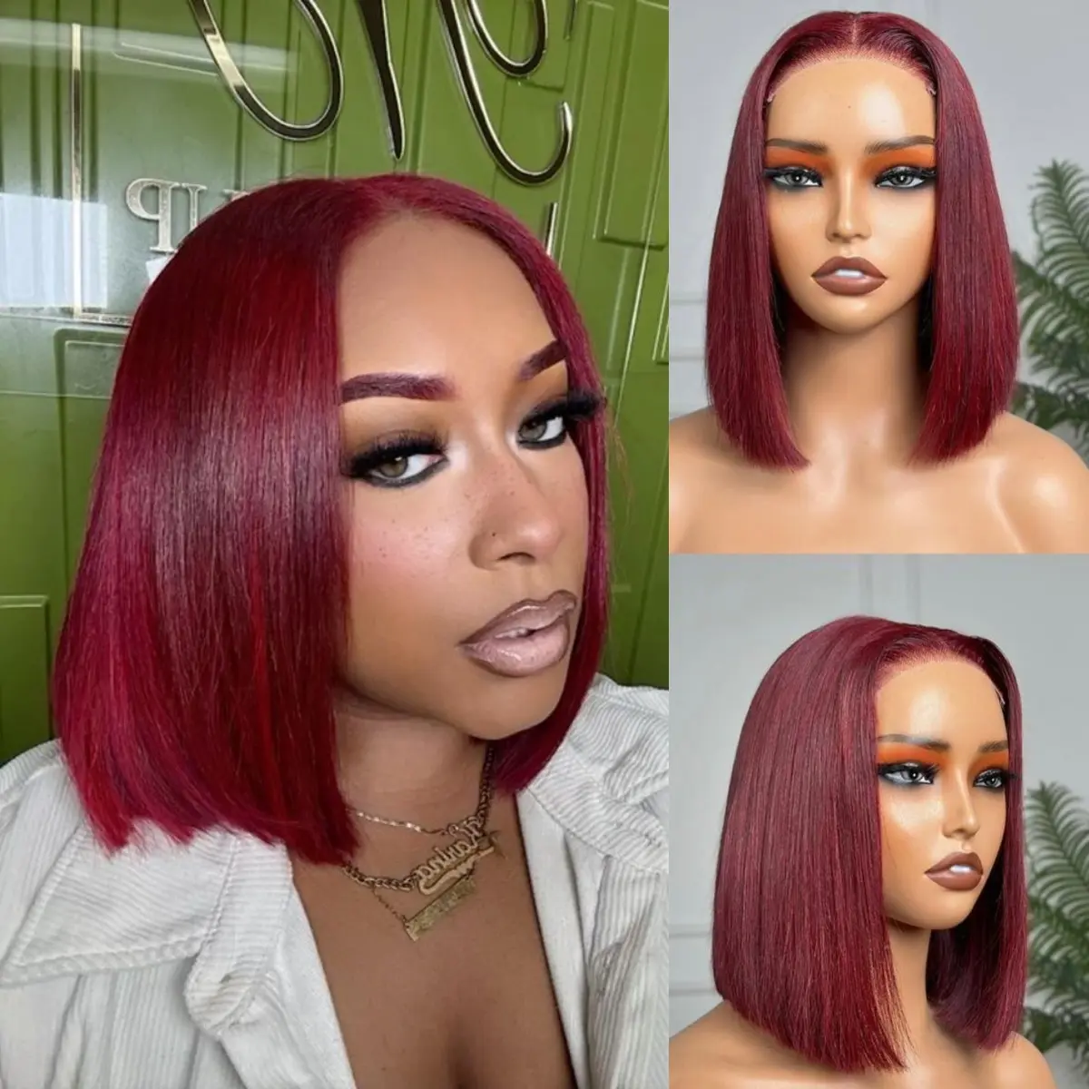 99j Burgundy BOB Wig Human Hair Details