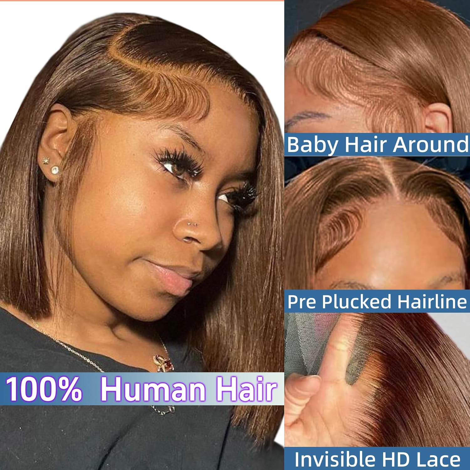 brown Bob Wig Human Hair Material: This Wig Is Crafted From 100% Brazilian Human Hair Sourced From Young Donors. The Hair Is Soft, Elastic, And Comfortable To Wear, Maintaining Its True Length Without Shedding Or Tangling. It Can Be Dyed And Bleached As Needed. The Frontal Wigs Feature Pre-Plucked Hairlines That Seamlessly Blend With All Skin Tones, Offering A Nude See-Through Natural Hairline That Reveals Baby Hair, Enhancing Your Beauty.
