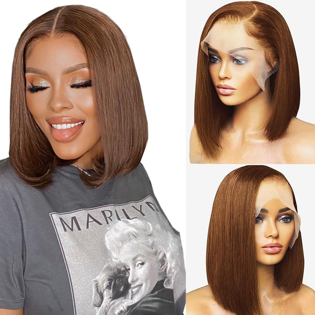 brown Lace Front Wigs Human Hair Quality: The Bob Wig’S Hair Is True To Length And Density (180%), With A Side Part That Mimics An Original Look. Rated At 10a Grade, This Deep-Parting Wig Allows For Bleaching, Dyeing, Or Restyling Without Tangling Or Shedding.